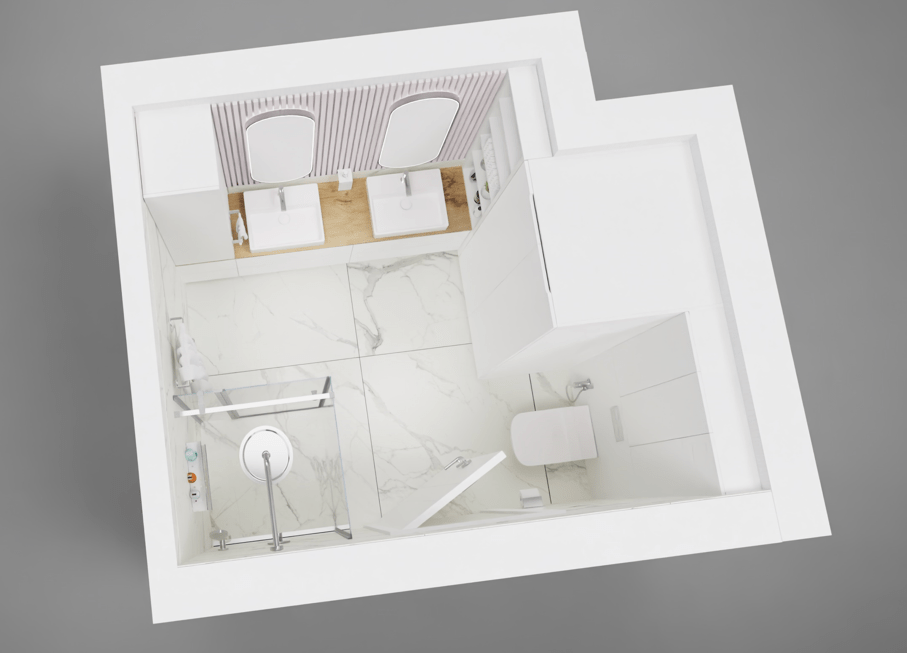 Cześć wszystkim! Mam dla Was kolejny ekscytujący projekt – tym razem łazienka w nowoczesnym stylu, gdzie dominują barwy drewna i betonu.