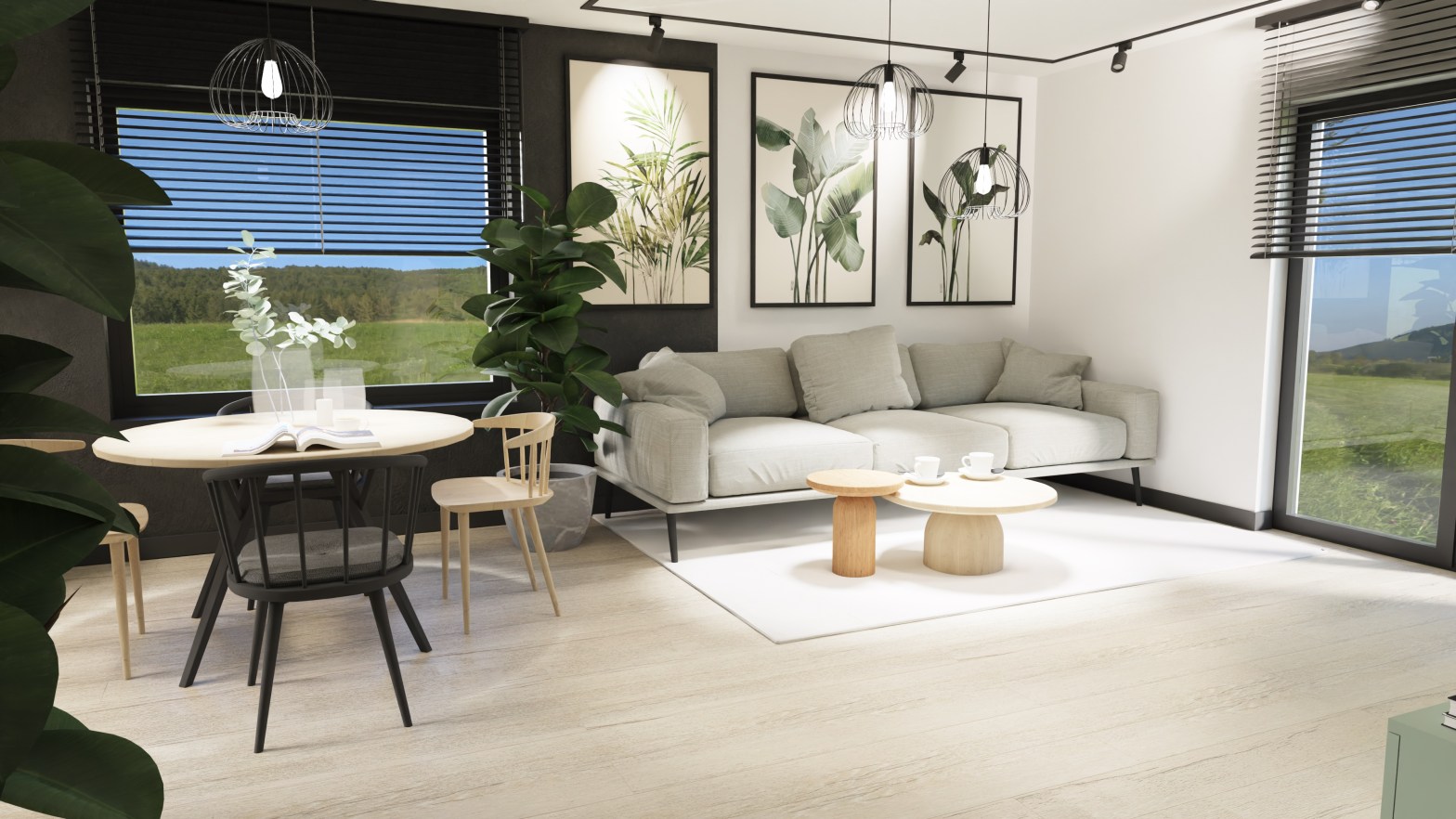 Salon z Aneks Kuchenny w Jasnych Kolorach